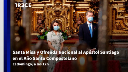 El domingo 25 de julio, a partir de las 12.00h, la cadena emite en directo la ceremonia desde la Catedral de Santiago de Compostela a la que asistirán Sus Majestades los Reyes