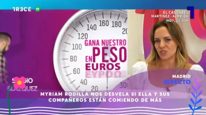 Myriam explica que “en Cadena 100 tenemos una iniciativa que se llama ‘Gana nuestro peso en euros’, es decir, el peso de Cadena 100 en euros. Antes del verano todos los que formamos parte de Cadena 100 hemos pasado por la báscula y hemos sumado todas esas cifras y hay 1526 kilos, lo que hemos hecho es poner en marcha una puja para todo aquel que quiera participar si se aventura a decir cuál va a ser nuestro peso en verano”.