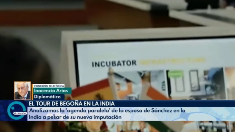 El diplomático Inocencio Arias se ha mostrado sorprendido este martes en 'El Cascabel' de TRECE ante el tratamiento de Begoña Gómez en India. "Me ha extrañado que la llamen primera dama, porque normalmente la embajada avisa de que en España la figura de la primera dama es la reina. Eso me ha chirriado".