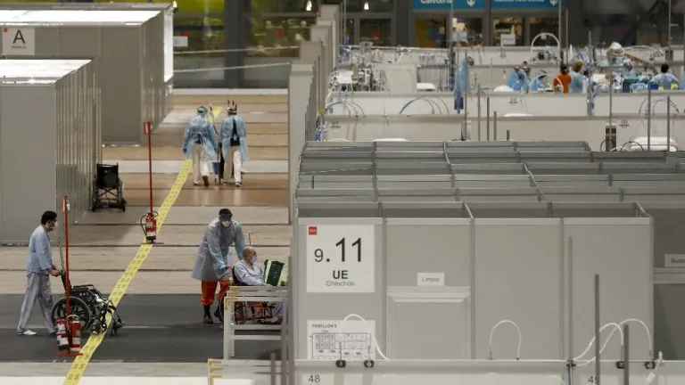 Además, se habilitaron cuatro habitaciones en los pabellones para que los pacientes graves "en sus últimos momentos de vida" pudieran estar acompañados por un familiar ataviado con un equipo de protección, según explicó el director de la instalación, Antonio Zapatero.