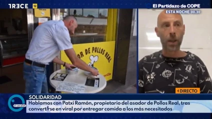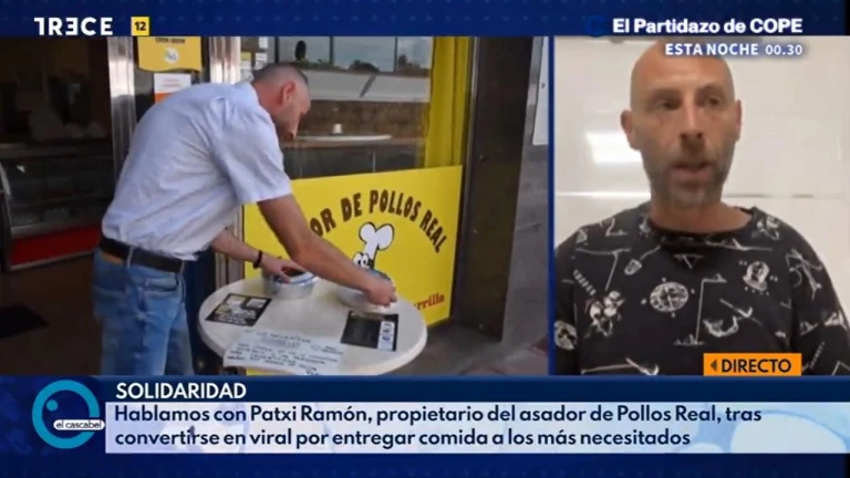 Patxi Ramón, propietario del Asador de Pollos Real de Huércal (Almería), ha estado en ‘El Cascabel’ de TRECE para relatar cómo nace esta iniciativa: “Todo comienza con una mujer de 80 años que llega a nuestro local apenada, buscando dinero en el bolso y pidiendo el plato del día. Nos contó su historia y decidimos hacer un menú de cinco euros para personas mayores, que fue idea de mi hija. Poco a poco veíamos que estas personas mayores dejaban de venir porque no les llegaba e incluso nos enseñaban la cartilla”.