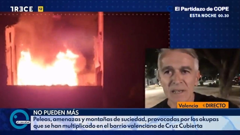 Incendios, amenazas, basura… Desde que el barrio valenciano de Cruz Cubierta está okupado se producen situaciones dramáticas. José Antonio Tejero, vecino del barrio afectado, ha estado en ‘El Cascabel’ de TRECE para denunciar la situación: “Hace unos diez días se produjo un incendio en unas casas abandonadas que están okupando y utilizaron unas maderas para hacer unas chabolas y se incendiaron. Es un problema que estamos padeciendo hace muchos años y esto ha sido la guinda del pastel”