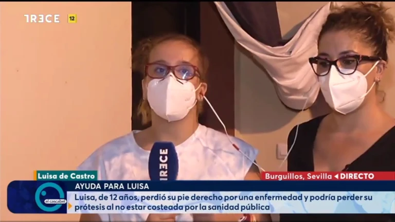 Luisa, una niña de 12 años de Burguillos (Sevilla) que perdió su pie derecho por una enfermedad y podría perder su prótesis al no estar costeada por la sanidad pública, ha estado en ‘El Cascabel’ de TRECE para comentar su situación.