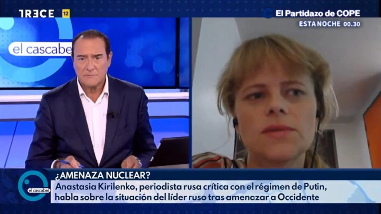 Anastasia Kirilenko, periodista rusa crítica con el régimen de Putin, ha estado en ‘El Cascabel’ de TRECE para relatar cuál es la situación: “Vivo en Francia porque tenía miedo de la III Guerra Mundial en 2014 y lo que tenemos ahora es muy parecido”. Tras escuchar el mensaje de Putin sobre el reclutamiento, Anastasia asegura que “da mucho miedo. Este reclutamiento ya ha empezado. Podemos ver imágenes en las redes sociales. Los niños lloran mientras los hombres salen en autobuses. Mi propio hermano podría ser reclutado”. A pesar de que esto ocurra, Anastasia dice que no debemos olvidarnos de “la resignación de la población rusa, ya que mi hermano dice que si tiene que defender la patria, tendrá que hacerlo”.