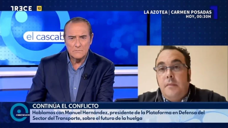 Manuel Hernández, presidente de la Plataforma en Defensa del Sector del Transporte, ha atendido a 'El Cascabel' de TRECE para explicar los motivos por los que el Gobierno no consigue avanzar en la negociación para lograr las medidas que reivindican los transportistas: "Todo son promesas, pero no hay ningún acuerdo firmado que nos pueda dar oxígeno y la posibilidad de arrancar los camiones. Nosotros no pedimos ayudas ni subvenciones, sino condiciones de trabajo. Pedir que bajen el gasoil para que luego te lo suban más de lo que te bajan, esa una trampa y no una solución".