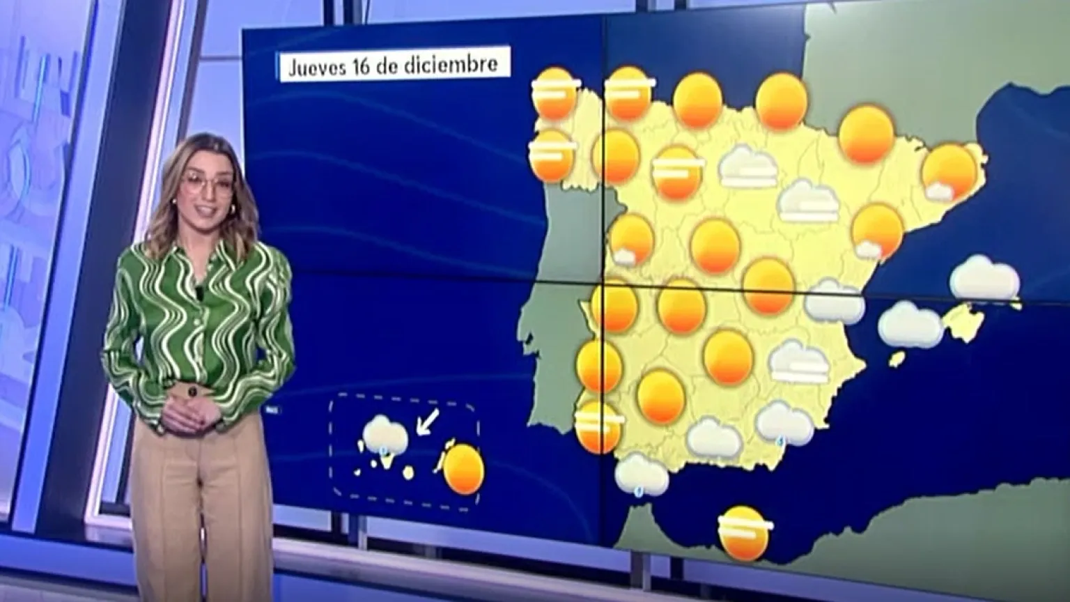 En el área del mediterráneo e interior sudeste se esperan precipitaciones débiles. Sobre todo, caerán en el Estrecho y extremo este de Andalucía. Todo ello, favorecido por un viento de Levante que va a soplar con fuerza en el Estrecho y Alborán. En Canarias habrá presencia de precipitaciones, aunque serán de carácter débil. Se van a mantener prácticamente las mismas temperaturas, salvo en la gran parte de la mitad norte, donde restarán algún grado.