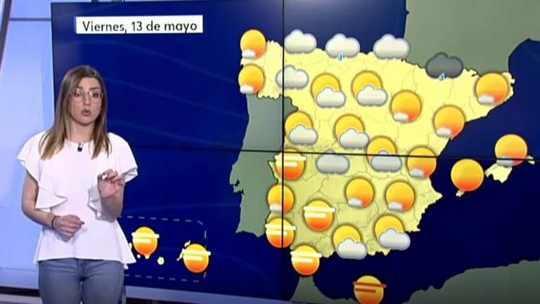 Este jueves el ascenso térmico ha dado un respiro, aunque los valores se mantienen cálidos para estar a 12 de mayo. De cara al viernes se recuperan las temperaturas en todo el país. Será más acusado el ascenso en Mallorca, en el interior del área mediterránea, oeste de Andalucía y norte de Galicia. Se pueden alcanzar los 35ºC en el valle del Guadalquivir, los 28ºC en Girona, 33ºC en Zaragoza o 22ºC en Vigo.