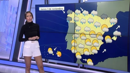 Las temperaturas diurnas en descenso en la mayor parte del país, salvo en el área mediterránea, donde permanecerán con pocos cambios o incluso subirán; 23º en Barcelona, 26º cuanto más al sur, en Valencia y Alicante, superando los 27º en Málaga, rozando los 15º en puntos del interior y sobrepasando los 20º en el área cantábrica. El viernes se espera un descenso de los termómetros, aunque ya de cara al fin de semana las lluvias se irán.