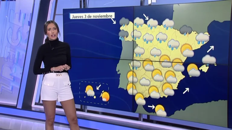 Para este jueves, en cambio, llega una nueva borrasca que irá barriendo la península y nos va a traer tormentas desde primeras horas en la mitad norte peninsular en Galicia, lluvias que se van a extender al área cantábrica llegando también a la Meseta Norte, precipitaciones en Castilla y León, en la Comunidad Foral de Navarra, Cataluña y en la Comunidad de Madrid; sin descartarlas en regiones de Extremadura. Siendo menos probables cuanto más hacia el sur y el este, de modo que en el extremo sureste peninsular sólo se esperan intervalos de nubes medias y altas, pero sin precipitación. En Canarias, intervalos nubosos en el norte de las islas, y poco nuboso en el sur.