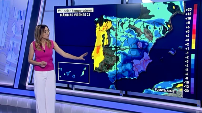 En las próximas 24 horas van a seguir bajando tanto las mínimas, como las máximas. Aunque se trata de un descenso prácticamente generalizado, hoy destaca sobre todo un desplome térmico en el sureste del país. En ese punto van a sobrepasar los 25 grados, pero por muy poco. Alcanzan por ejemplo los 26 grados en Albacete, misma temperatura que en Almería. En cuanto a las mínimas, se ha notado de forma más acusada en León, Pamplona o Soria. Además, se han dado heladas en zonas altas que serán más intensas en la madrugada del sábado.