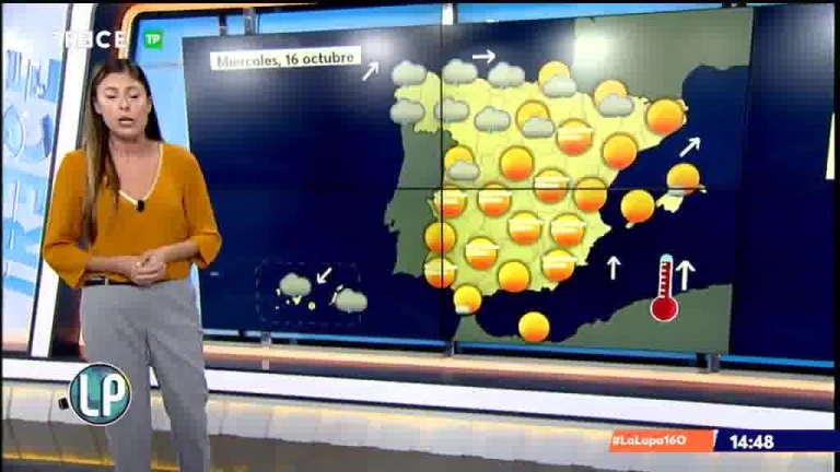 Temperaturas diurnas en descenso en el Cantábrico, alto Ebro y Extremadura, en aumento en el interior noroeste y área mediterránea peninsular y con pocos cambios en el resto. Vientos del oeste y suroeste en la Península y en Baleares, con intervalos de fuerte en el litoral norte de Galicia y Cantábrico occidental. Alisios en Canarias.
