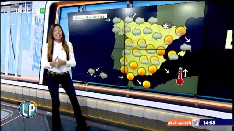 Según Aemet, el sistema frontal producirá lluvias y chubascos en el extremo norte peninsular, que serán localmente fuertes o persistentes en el Cantábrico y Pirineos occidentales; a lo largo del día también afectará al centro y sur peninsulares y a Baleares, con precipitaciones ocasionales, más intensas y frecuentes en zonas montañosas. Al final tenderán a disminuir la nubosidad y las precipitaciones, excepto en el entorno de Galicia y Cantábrico occidental donde se espera la entrada de un nuevo frente. En Canarias, nuboso o cubierto en el norte de las islas.