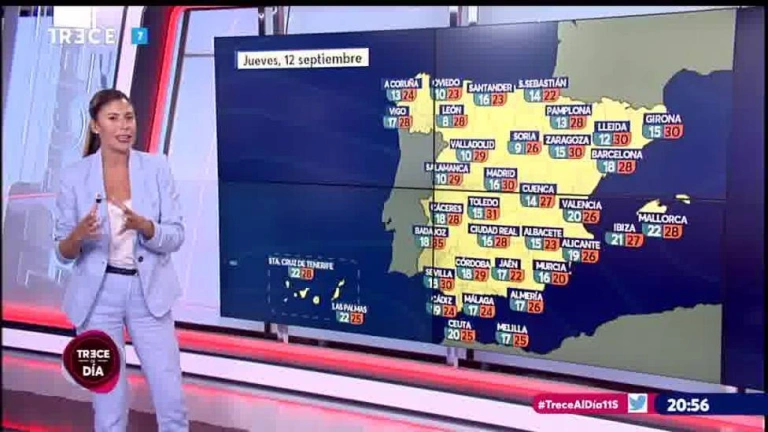 Según la Aemet, en el extremo sudeste peninsular e Ibiza se esperan cielos nubosos o cubiertos, con chubascos y tormentas que podrán ser localmente muy fuertes o persistentes, e incluso torrenciales. Podrían afectar, de forma más débil y dispersa, a otras zonas del tercio sudeste de la Península, Baleares, Melilla y Ceuta. Intervalos nubosos al principio en el norte de Galicia, área Cantábrica y norte de las islas Canarias, tendiendo a poco nuboso a lo largo del día. Poco nuboso o despejado en el resto del país, con algunos intervalos nubosos en otras zonas de la mitad sur peninsular.