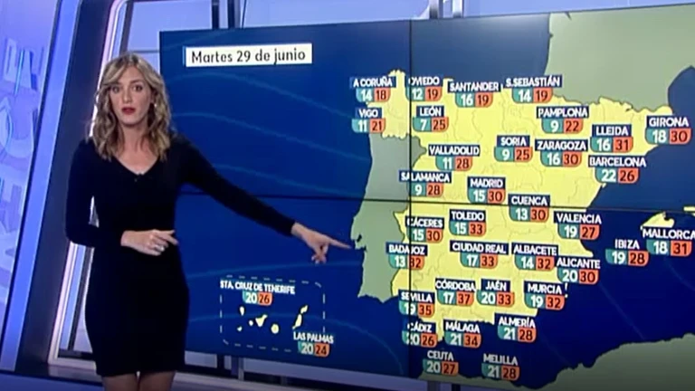 Este martes, las máximas suben de forma generalizada en el interior peninsular y salvo en el nordeste, área mediterránea y en ambos archipiélagos donde varían poco o descienden de forma local. Aun así, la jornada se presenta calurosa, sobre todo en el Valle del Guadalquivir: en Sevilla se registran hoy hasta 35 º C (37 en Córdoba, incluso), en contraste con los valores diurnos por debajo de los 20º con los que se quedan en el extremo norte.