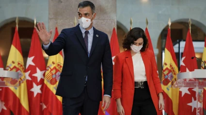 El presidente del Gobierno, Pedro Sánchez, y la presidenta madrileña, Isabel Díaz Ayuso, han escenificado un acercamiento durante la reunión mantenida este lunes, en la que han acordado crear un 'Grupo COVID-19' integrado por ambas administraciones que se reunirá semanalmente para coordinar y planificar medidas contra la pandemia.
