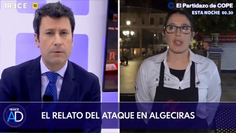 TRECE Al día Jaimaca, testigo de Algeciras, cuenta en 'TRECE al día' cómo vivió el ataque desde su bar00:00 Volumen CerrarRedacción digitalMadrid - Publicado el 27 ene 2023, 11:00 - Actualizado 27 ene 2023, 11:291 min lecturaFacebookTwitterWhatsappTelegramEnviar por emailCopiar enlace "Lo que el miércoles, según Míriam Nogueras, se había acabado, ayer resucitó. Matrimoniadas de Sánchez y Puigdemont, ni contigo ni sin ti" Carlos Herrera Lo último "¡¿Cuánto subieron los precios el mes pasado?! Hay que mirar dos cosas: cómo están los huevos y cuánto ha subido la luz" 14 nov 2025, 13:46 2 min La UCO se persona en varias sedes de Acciona por una pieza separada del 'caso Koldo' 14 nov 2025, 12:37 1 min Carlos Herrera desgrana las claves de las palabras del abogado de la UE sobre la amnistía 14 nov 2025, 12:36 3 min Pilar Cisneros, testigo de las consecuencias de la nueva tasa de basuras: "Una mujer jubilada de Madrid que vive sola ha pagado 422 euros; he visto la factura" 14 nov 2025, 11:48 2 min José Antonio Maldonado, meteorólogo, sobre la borrasca Claudia: "La situación es bastante peliaguda y va a seguir lloviendo en gran parte de la Península" 14 nov 2025, 07:38 2 min Visto en ABC La Aemet avisa de lluvias este fin de semana y una bajada de temperaturas en varias zonas de España Herrera en COPE Con Carlos Herrera Lunes a viernes de 06:00h a 13:00h Última hora completa ProgramasHerrera en COPECon Carlos HerreraTiempo de JuegoCon Paco González, Manolo Lama y Juanma CastañoLa LinternaCon Ángel ExpósitoEl Partidazo de COPECon Juanma Castaño Los últimos audios 12:00H | 14 NOV 2025 | Herrera en COPE 14 nov 2025, 13:08 1 min La receta sueca, por María José Navarro | A Ciegas en Herrera en COPE 14 nov 2025, 13:03 1 min Los estrenos con Jerónimo José Martín | El cine en Herrera en COPE 14 nov 2025, 12:41 1 min El libro que Íñigo Errejón publicó en 2021 que anticipaba su delicado estado de salud mental: "Muy criminal" 14 nov 2025, 12:10 3 min 11:00H | 14 NOV 2025 | Herrera en COPE 14 nov 2025, 12:05 1 min Último boletín 05:00 H | 14 NOV 2025 | BOLETÍN 14 nov 2025, 05:07 Reproducir