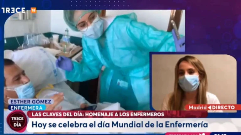 Para celebrar el Día Mundial de la Enfermería, "TRECE al día" habla con una de estas profesionales. Su nombre es Esther Gómez, pero en Instagram muchos la conocen como @mienfermerafavorita. "Un día como hoy, después de todo lo que estamos viviendo, queremos dar las gracias". Esther explica que "anímicamente es duro, son muchos fallecidos, muchas familias destrozadas. Estamos cansados. Igual que los pacientes con ingresos muy largos tienen shock postraumático y están deprimidos, a nosotros nos va a pasar próximamente, porque es un agotamiento brutal, físico y emocional. Por eso, decepciona a veces cómo se comporta la población. Yo no quiero un aumento de sueldo, quiero que la sociedad nos devuelva este gesto".