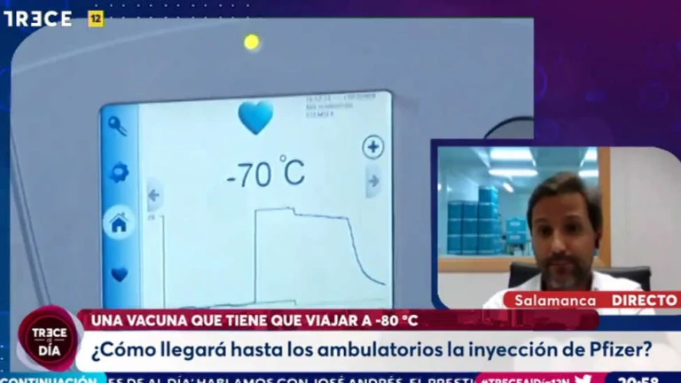 Jorge González, director de ‘Polar Exprés’, explica en 'TRECE Al Día' cómo se llevaría a cabo el transporte de la vacuna contra el coronavirus fabricada por Pfizer. La conservación de esta vacuna tiene que ser a menos 80 grados centígrados, lo que dificultaría su distribución. Aun así, el director de 'Polar Exprés' afirma que: "No es tan complicado, nosotros lo hacemos todos los días, igual que las empresas de este sector especializadas en la logística de elementos sensibles".