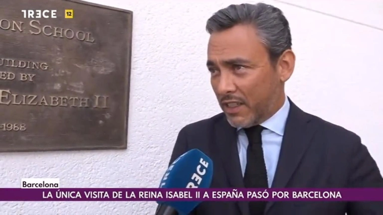 En esta visita, la reina de Inglaterra inauguró un colegio británico en Barcelona. Dunkan Giles, antiguo alumno e hijo del director, ha estado en ‘TRECE al mediodía’ para recordar cómo fue aquel acontecimiento. Ahora, Dunkan es el director del colegio Kensington School Barcelona y explica cómo su padre les explicó que en septiembre la reina Isabel II iba a hacer la inauguración: “Nadie se lo creía, pensábamos que estaba de broma”