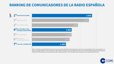 Al comunicador de COPE lo sintonizan a diario 2.426.000 oyentes, 129.000 más que a su inmediata seguidora