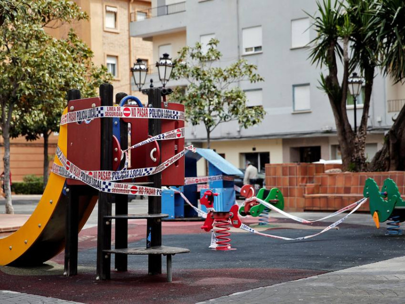GRAFCVA4196. PAIPORTA (VALENCIA), 16/04/2020.- Vista general de un parque infantil precintando. EFE/Manuel Bruque