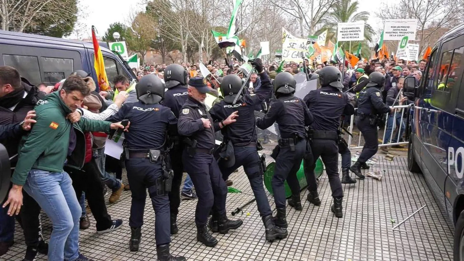 1. Cargas policiales en la manifestación de los agricultores en Don Benito