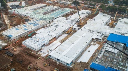 La imagen de portada de este lunes en muchos diarios es la de esas decenas de excavadoras y miles de obreros que han trabajado noche y día para levantar en diez días un hospital en la ciudad china de Wuhan. Como señala La Razón un hospital de mil camas y 34.000 mil metros cuadrados una superficie equivalente a tres estadios y medio como el Bernabeu. El Hospital Huoshenshan que entrará hoy en funcionamiento, se ha convertido en paradigma del "milagro chino", a la vez que en la mejor herramienta propagandística de Pekín en la lucha contra el coronavirus.