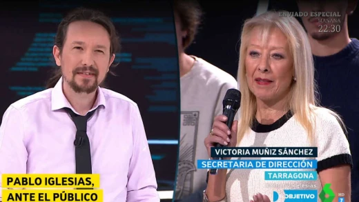 Pablo Iglesias pasó por el programa de laSexta 'El Objetivo' este martes, por el que están pasando los principales líderes políticos en las últimas semanas. Allí, el líder de Podemos vivió uno de los momentos más tensos cuando tuvo que enfrentarse con Victoria, una mujer de Tarragona que criticaba la tibieza de Podemos para enfrentarse a los independentistas.