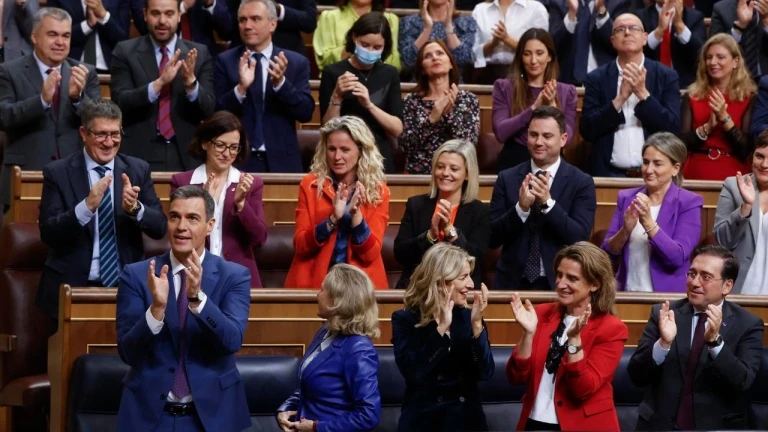 Tras la votación, Sánchez ha sido ovacionado por la bancada socialista durante un largo aplauso que ha durado más de tres minutos y el líder socialista ha recibido las primeras felicitaciones calurosas de las vicepresidentas, Nadia Calviño, Yolanda Díaz y Teresa Ribera.