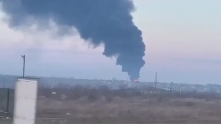 Columna de humo en el aeropuerto Ciudad de Kherson -entre Crimea y Odessa- que los rusos han bombardeado. COPE
