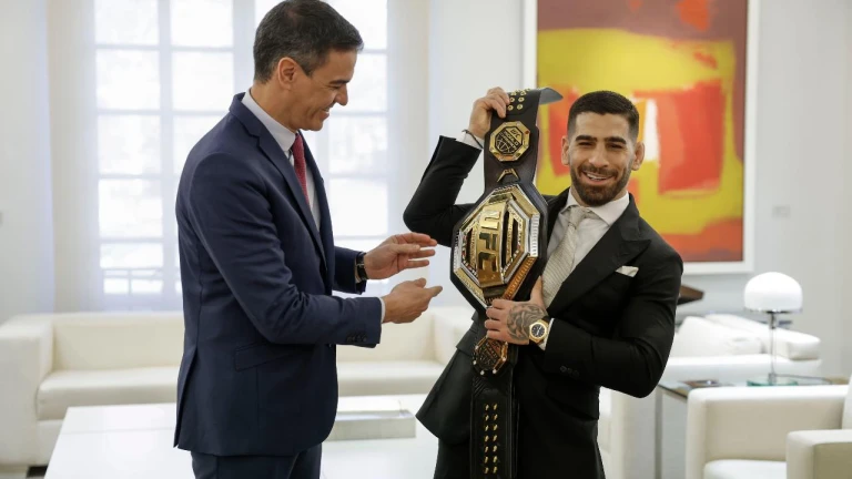 Las imágenes del encuentro entre Pedro Sánchez e Ilia Topuria