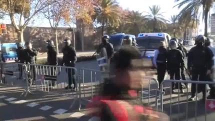 Los Mossos d'Esquadra han cargado hoy contra un grupo de Comités de Defensa de la República (CDR), algunos de ellos encapuchados, que arrojaban vallas y otro tipo de objetos al cordón policial establecido en la avenida Paralelo de Barcelona, uno de los puntos donde se registra por ahora una mayor tensión en el dispositivo del 21D