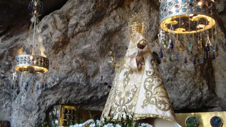 El 22 de agosto de 1989, el Papa Juan Pablo II pisó la roca asturiana, anduvo por el largo pasillo de la montaña hasta que llegó a una pequeña cueva. “¡Qué lugar tan hermoso!”, cuentan que dijo. Y en ese escondido lugar de Asturias, se arrodilló y rezó a la Virgen de Covadonga.
